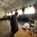 Протоиерей Николай совершил молебное пение о здравии и окропил всех Святой водой. Все дети получили сладкие подарки.