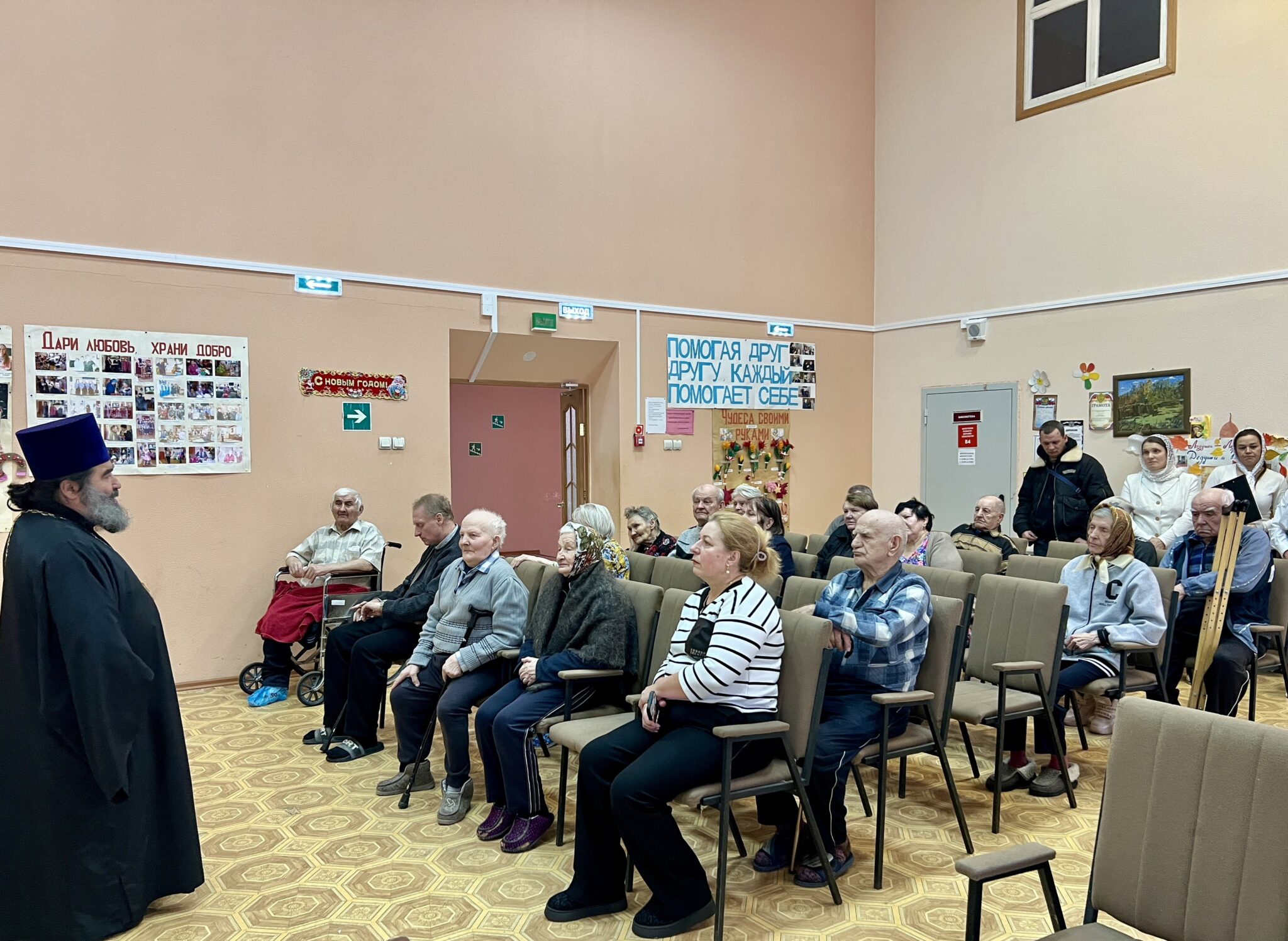 В тот же день благочинный Брянского района в сопровождении воскресной школы храма и церковного хора посетили дом-интернат малой вместимости для пожилых людей и инвалидов г. Сельцо. Дети из воскресной школы храма и церковный хор исполнили рождественские песнопения и стихи. Благочинный поздравил проживающих и сотрудников с Рождеством Христовым, пожелал здравия, крепости духа, помощи Божией и вручил всем сладкие гостинцы. В свою очередь и насельники Дома Милосердия вручили детям из воскресной школы храма сладкие гостинцы.