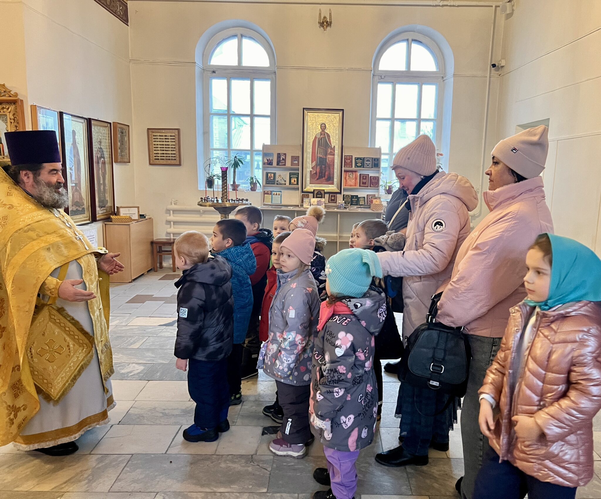 В тот же день храм принимал гостей из городского детского сада «Чебурашка». Детей в храме радушно встречали благочинный Брянского района иерей Константин Серенков. По сложившейся традиции дети передали в храм собранные ими рождественские подарки для детей прихожан особых категорий. Священник провел для детей экскурсию по храму, рассказал о святителе Николае, о чудесной Божией помощи по молитвам святителя. Все юные гости получили сладкие подарки к празднику.